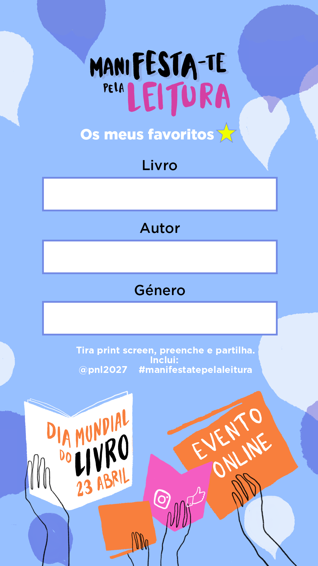 Através das redes sociais do PNL2027, durante as próximas três semanas, serão disponibilizados diversos materiais customizáveis e publicáveis online pelos manifestantes.